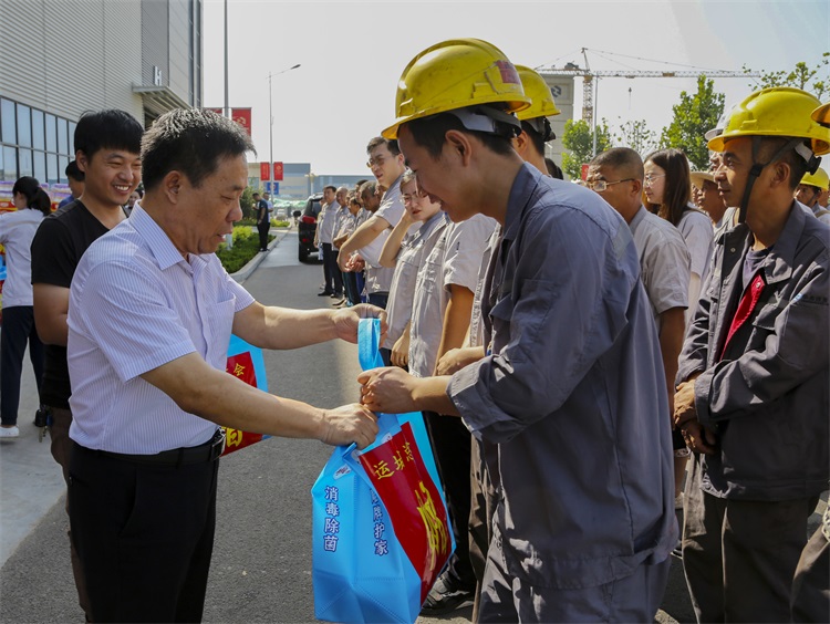 8月10日上午,運(yùn)城市總工會(huì)黨組書(shū)記、常務(wù)副主席李志民,市總工會(huì)黨組成員、副主席秦全發(fā)帶領(lǐng)工作人員來(lái)到華兆東南(運(yùn)城)綠色建筑集成有限公司裝配式建筑產(chǎn)業(yè)基地一線,開(kāi)展“情系職工、清涼一夏”慰問(wèn)活動(dòng),為炎炎夏日里仍堅(jiān)守在崗位的一線職工們送上了飲料、罐頭、毛巾、洗發(fā)水、洗衣粉、香皂等防暑降溫物品,讓他們切身感受到了黨和政府以及工會(huì)組織的關(guān)懷和溫暖。