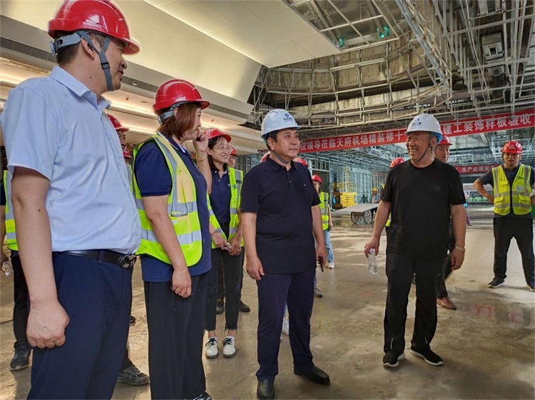 8月12日上午,華兆控股董事長兼總經理牛正澤冒著風雨蒞臨我公司承建的成都天府國際機場工程調研項目建設情況。華兆裝飾公司副經理李強、徐金,裝飾分公司副經理劉波璇陪同調研。