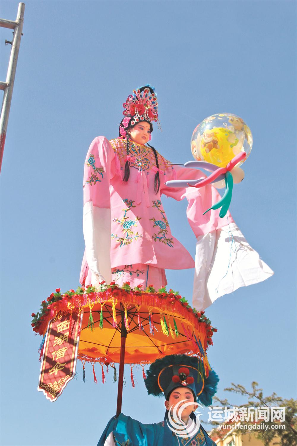 當天,河津市僧樓鎮(zhèn)帶來的表演分為“河汾門下”“風追大唐”“時代雄風”“春和萬象”4個篇章,通過原創(chuàng)古風舞蹈、武術(shù)、高蹺斗舞、轉(zhuǎn)花燈等多種表現(xiàn)形式,將傳統(tǒng)文化與現(xiàn)代藝術(shù)巧妙融合;河津市小梁鄉(xiāng)不甘示弱,馬拉鼓車、炫酷摩托車隊表演、花車舞獅、紙馬旱船、打花鼓等社火節(jié)目輪番上演。其中,馬家莊抬閣驚艷亮相,數(shù)米高的架子上,身著彩服保持固定姿勢的兒童賣萌搞怪,惹得大家捧腹大笑。
